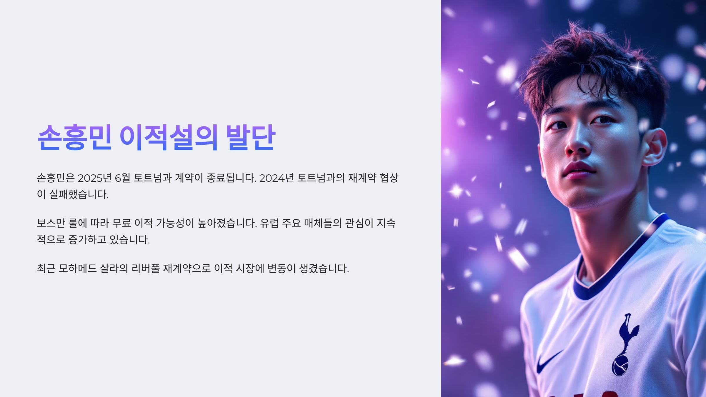 이 글에서는 손흥민의 이적설에 관한 최신 소식을 중심으로, 구단과 선수의 입장, 유럽 주요 빅클럽의 움직임까지 낱낱이 분석해볼게요.