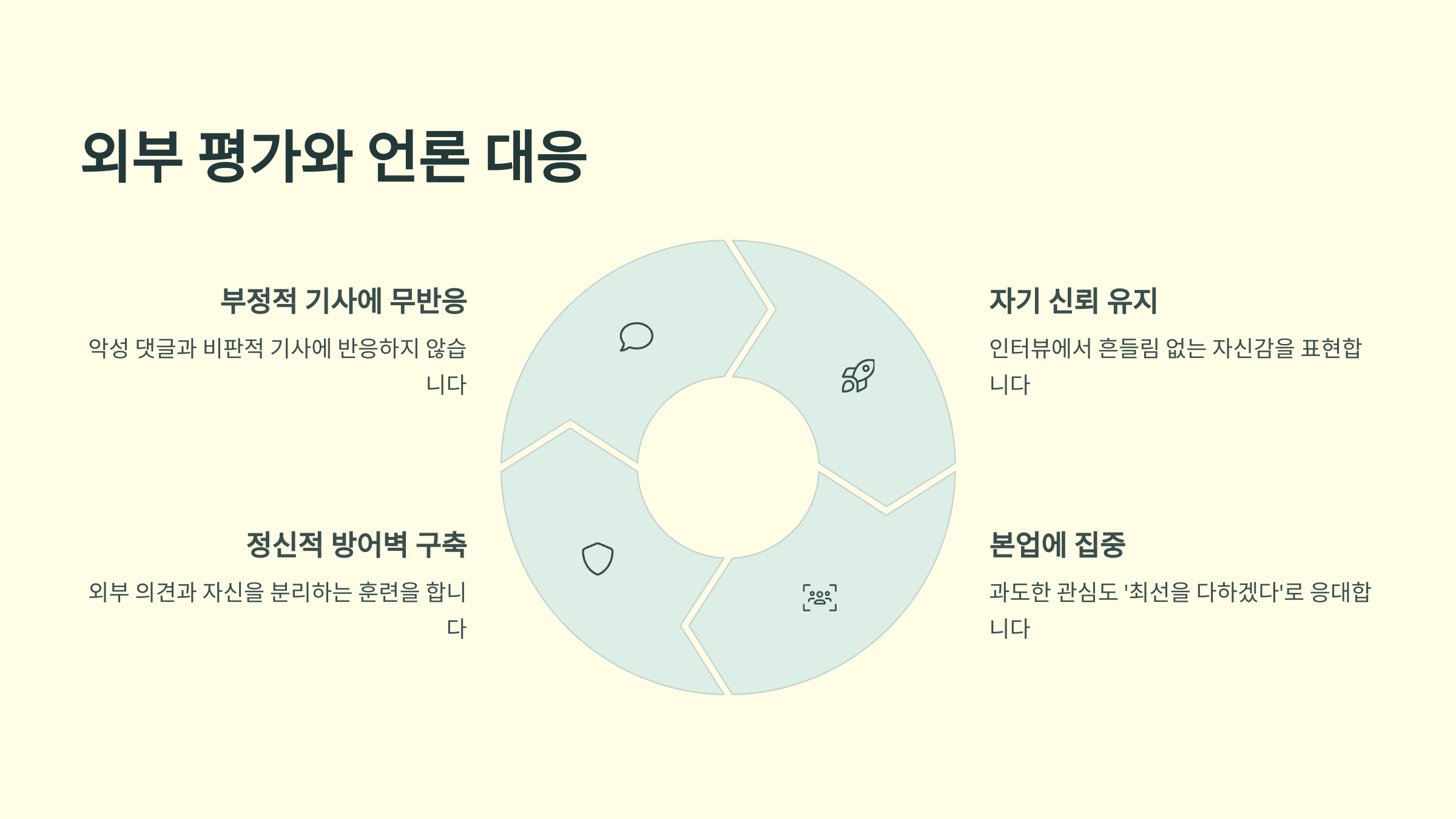 외부로부터 나를 지키는 건, 단순한 회피가 아니에요. 김연아처럼 중심을 지키며 자신이 원하는 방향으로 걸어가는 게 진짜 멘탈 관리랍니다.