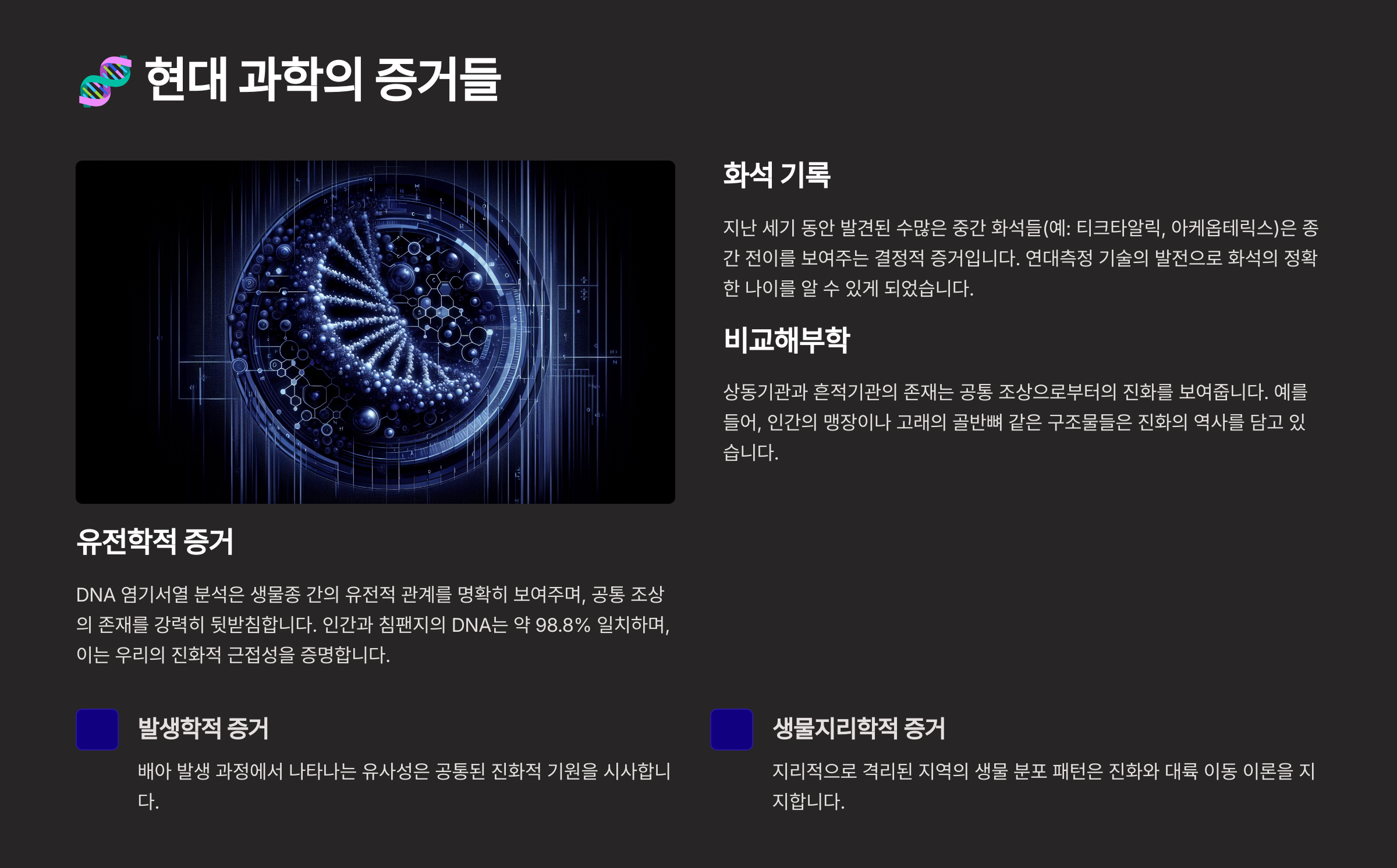 🧪 진화론을 뒷받침하는 현대 증거 표
