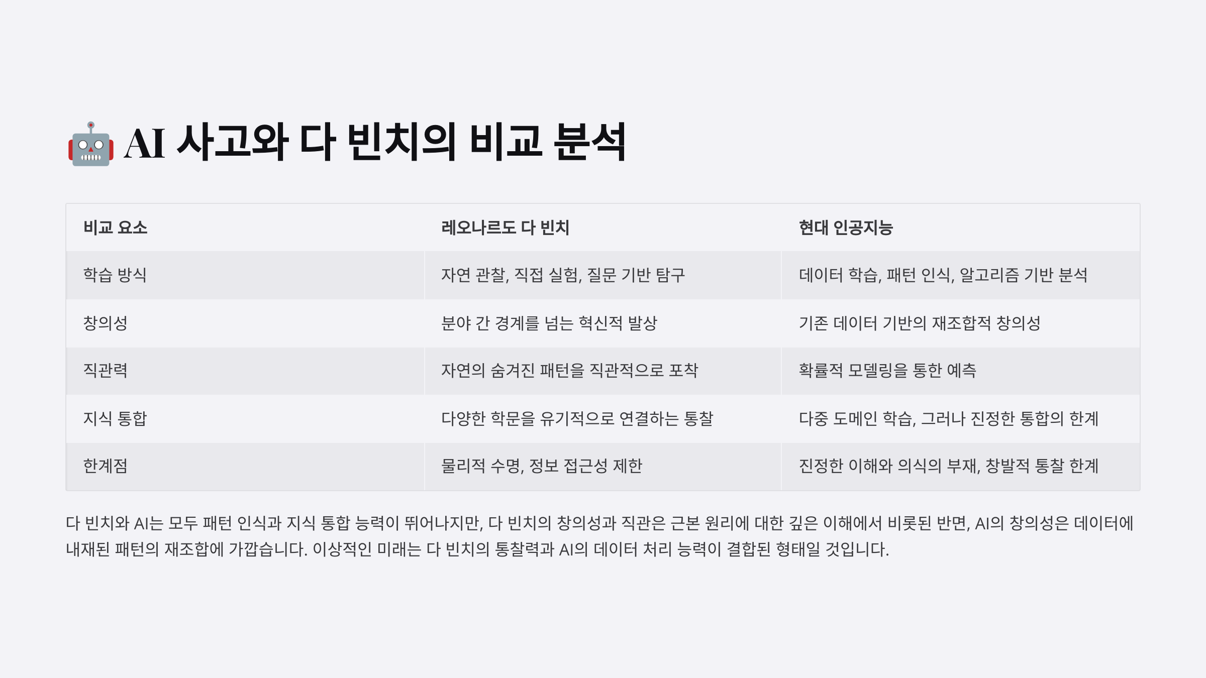 🤖 AI 사고와 다 빈치의 비교 분석
