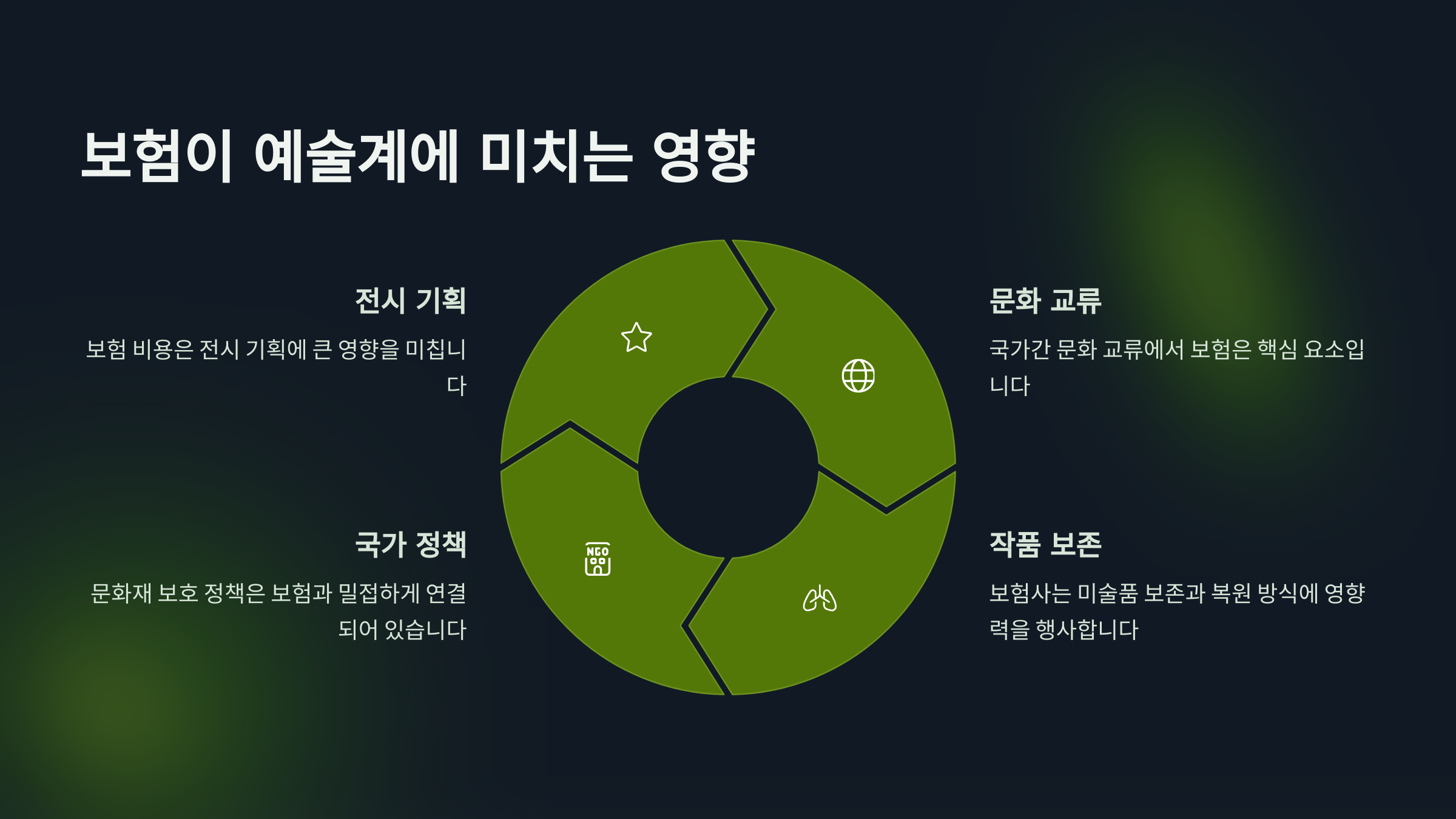 이처럼 보험은 전시 기회를 늘려주고, 전 세계 관람객이 더 다양한 예술을 접할 수 있도록 돕고 있어요. 예술을 더 '열린 문화'로 만드는 데 기여하고 있는 셈이죠.