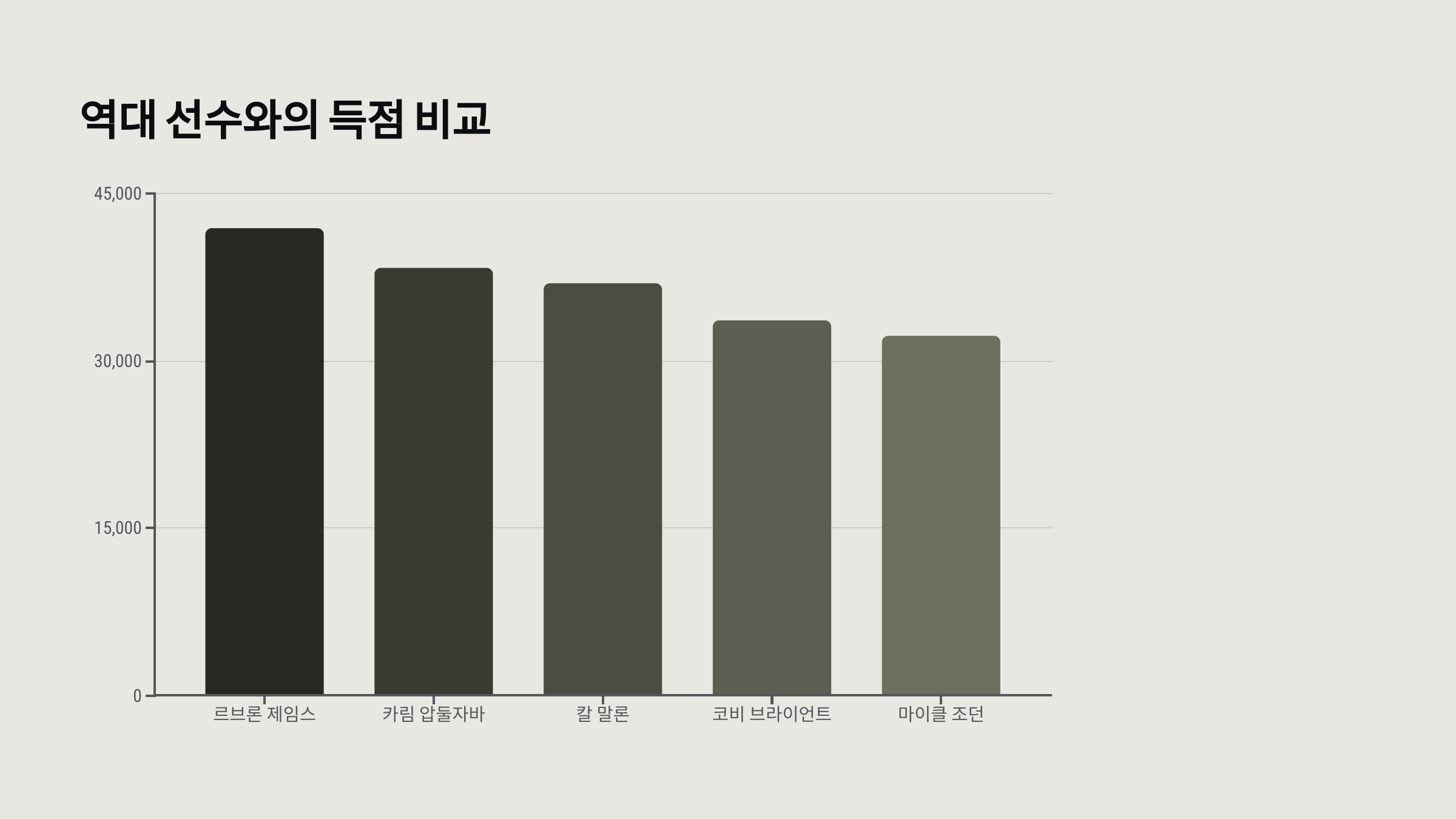 | 코비 브라이언트 | 33,643점 | 1,346 | 25.0점 |
