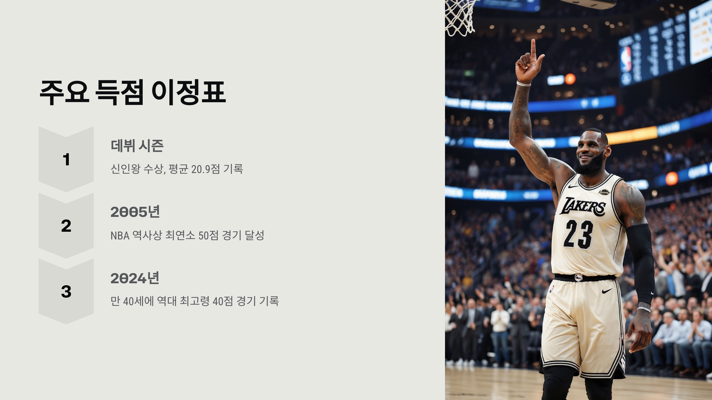 르브론 제임스는 단순히 ‘득점왕’이라는 단어로는 정의할 수 없어요. 그의 득점 방식은 팀의 전술 흐름, 수비 붕괴, 그리고 공간 창출까지 연계되는 엄청난 임팩트를 가지고 있답니다. 단순히 점수를 넣는 게 아니라, 경기를 통제하는 방식으로 득점을 해요.