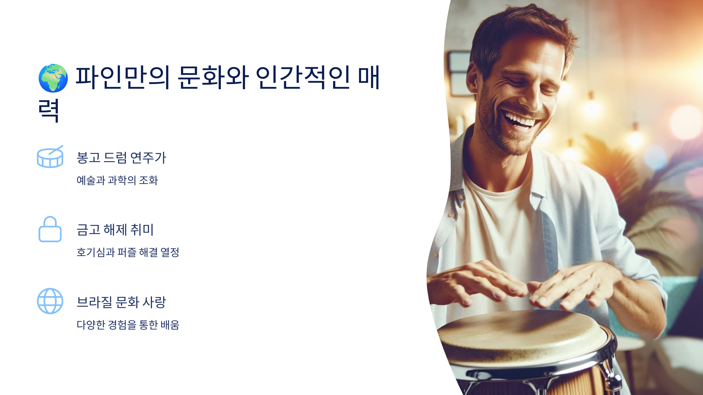 리처드 파인만은 과학자이면서 동시에 진짜 ‘인간미’ 넘치는 사람이었어요. 그는 물리학뿐만 아니라 예술, 음악, 여행, 드럼 연주 등 다양한 분야에 호기심을 가졌고, 그것을 거리낌 없이 즐겼죠. 이런 모습은 사람들에게 “과학자도 우리처럼 사는 사람이구나” 하는 공감을 줬어요.