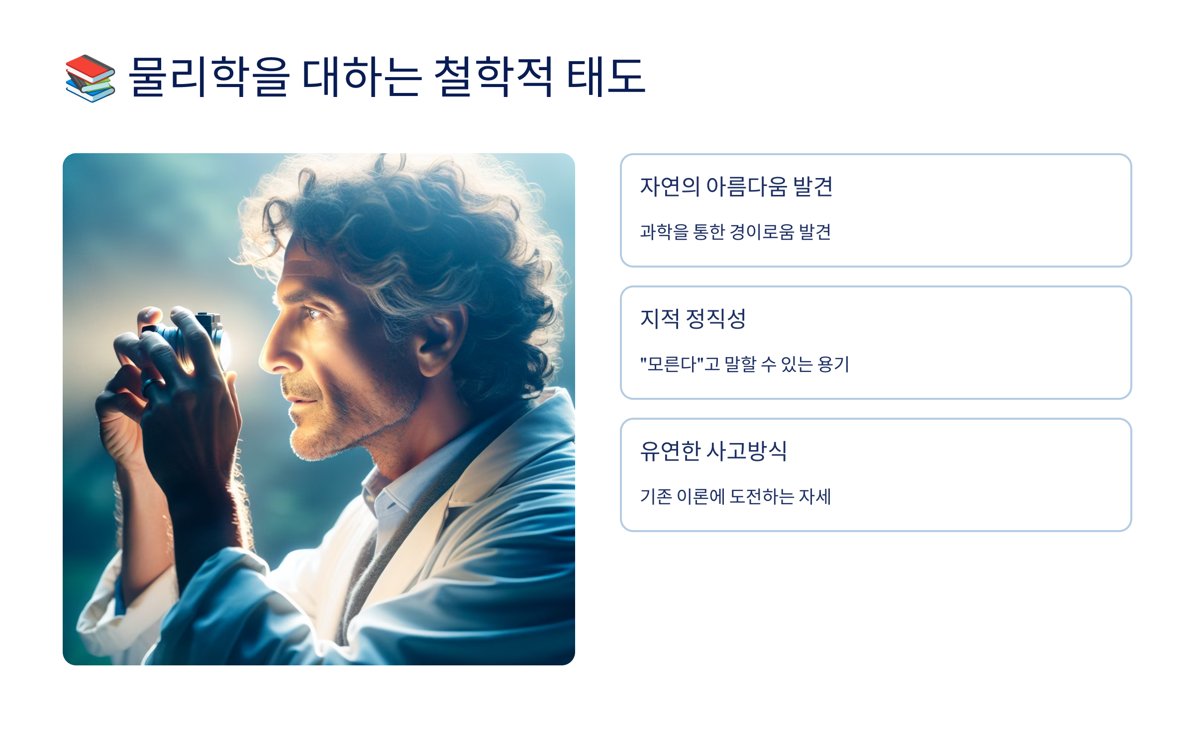 리처드 파인만이 단순히 '천재 물리학자'로 끝나지 않고 수많은 사람에게 영향력을 줄 수 있었던 건, 그가 물리학을 바라보는 태도 덕분이었어요. 그는 과학을 ‘진리의 탐색’이 아니라 ‘현상의 이해’로 접근했죠. 다시 말해, 어떤 것이든 설명 가능할 때까지 탐구하는 과정 자체를 사랑했어요.