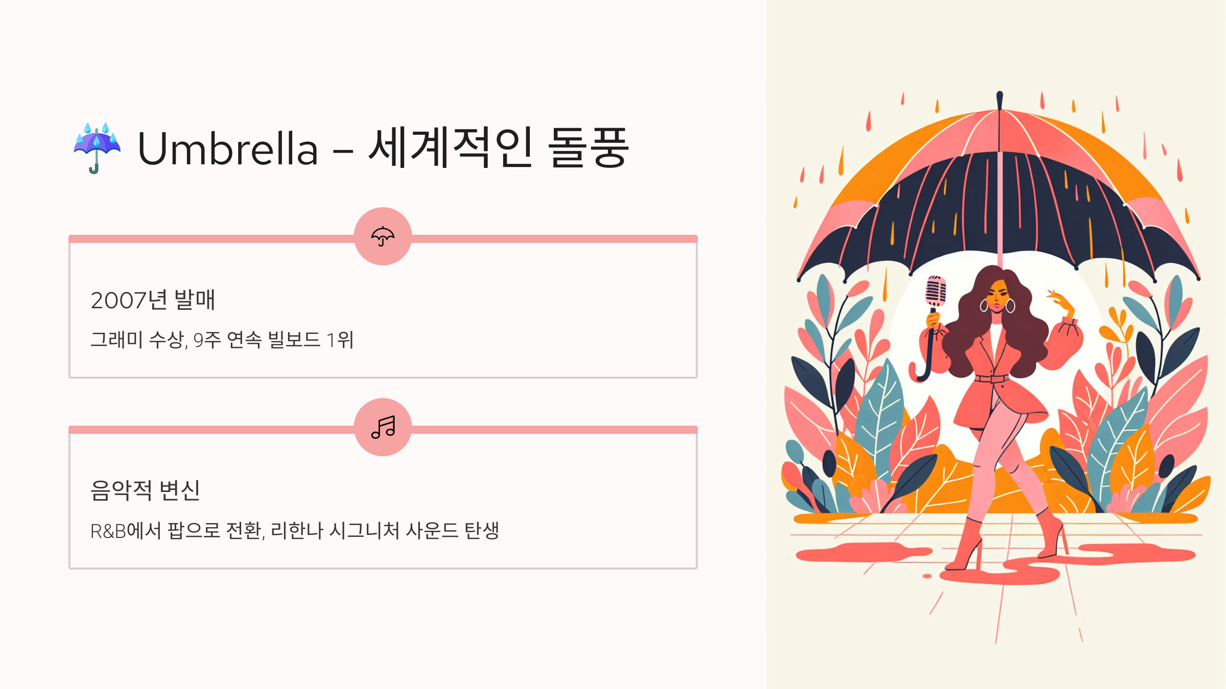 ‘Umbrella’는 단순한 유행이 아니라 한 시대를 대표하는 사운드였어요. ☂️
