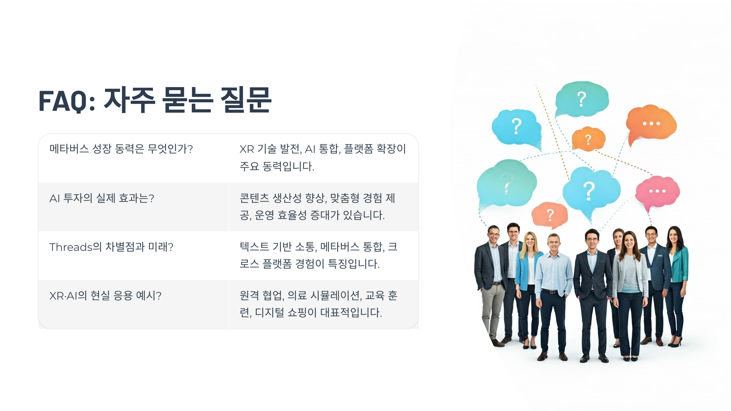 A2. 일부는 초기 단계지만, 교육, 게임, 비즈니스 등에서 빠르게 확장 중이에요.