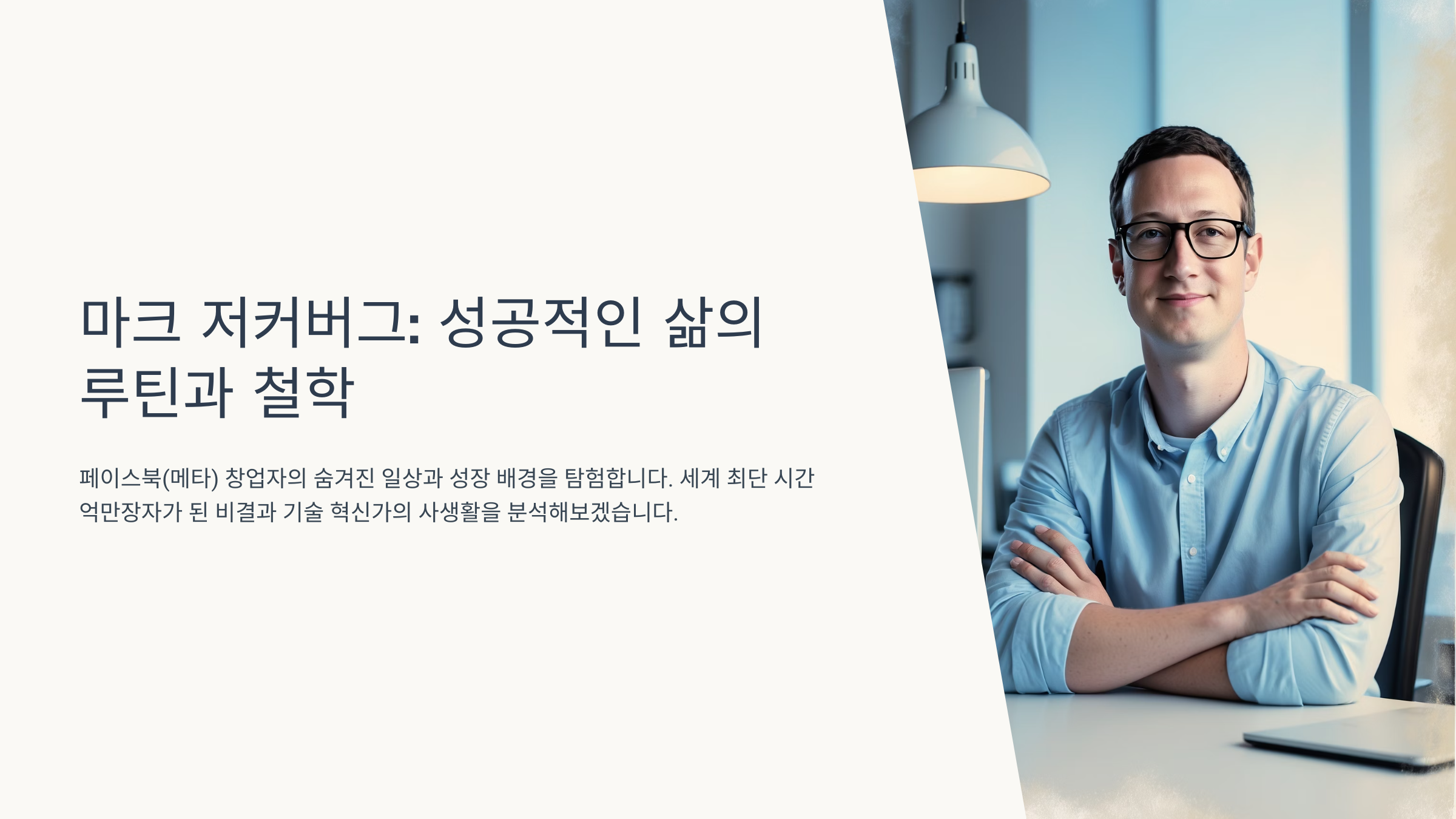 마크 저커버그는 단순히 세계적인 억만장자가 아니에요. 그의 삶을 자세히 들여다보면 단순한 돈보다 훨씬 더 놀라운 루틴과 철학이 숨어 있어요. 특히 그의 하루 일과는 일반인과는 전혀 다른 차원이에요.