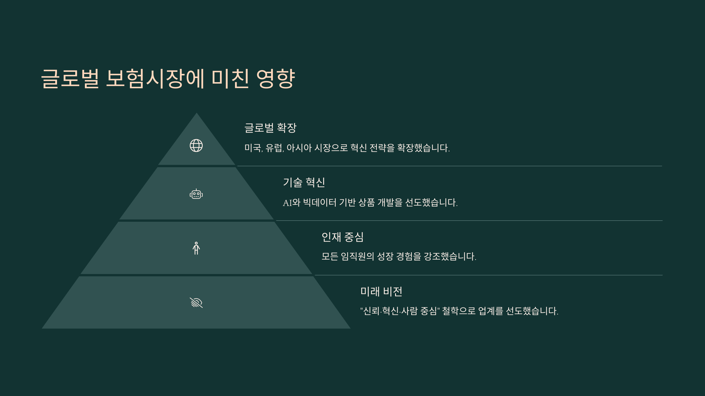 A4. 사람 중심의 가치와 혁신의 중요성을 세계 보험업계로 퍼뜨려, 보험업계의 새로운 표준을 제시했어요.