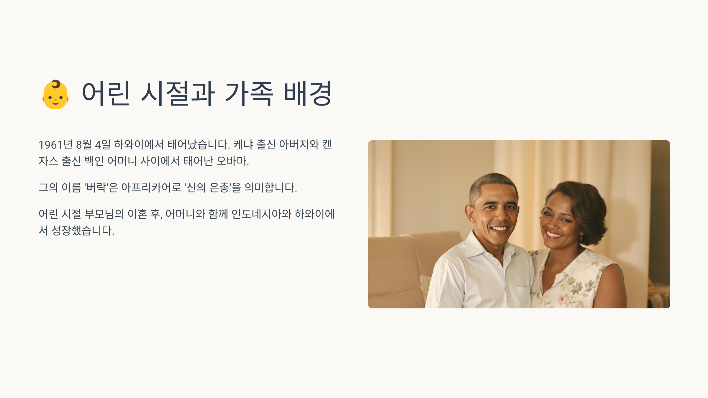 🎯 오바마의 뿌리를 아는 것이 그의 철학을 이해하는 열쇠예요!