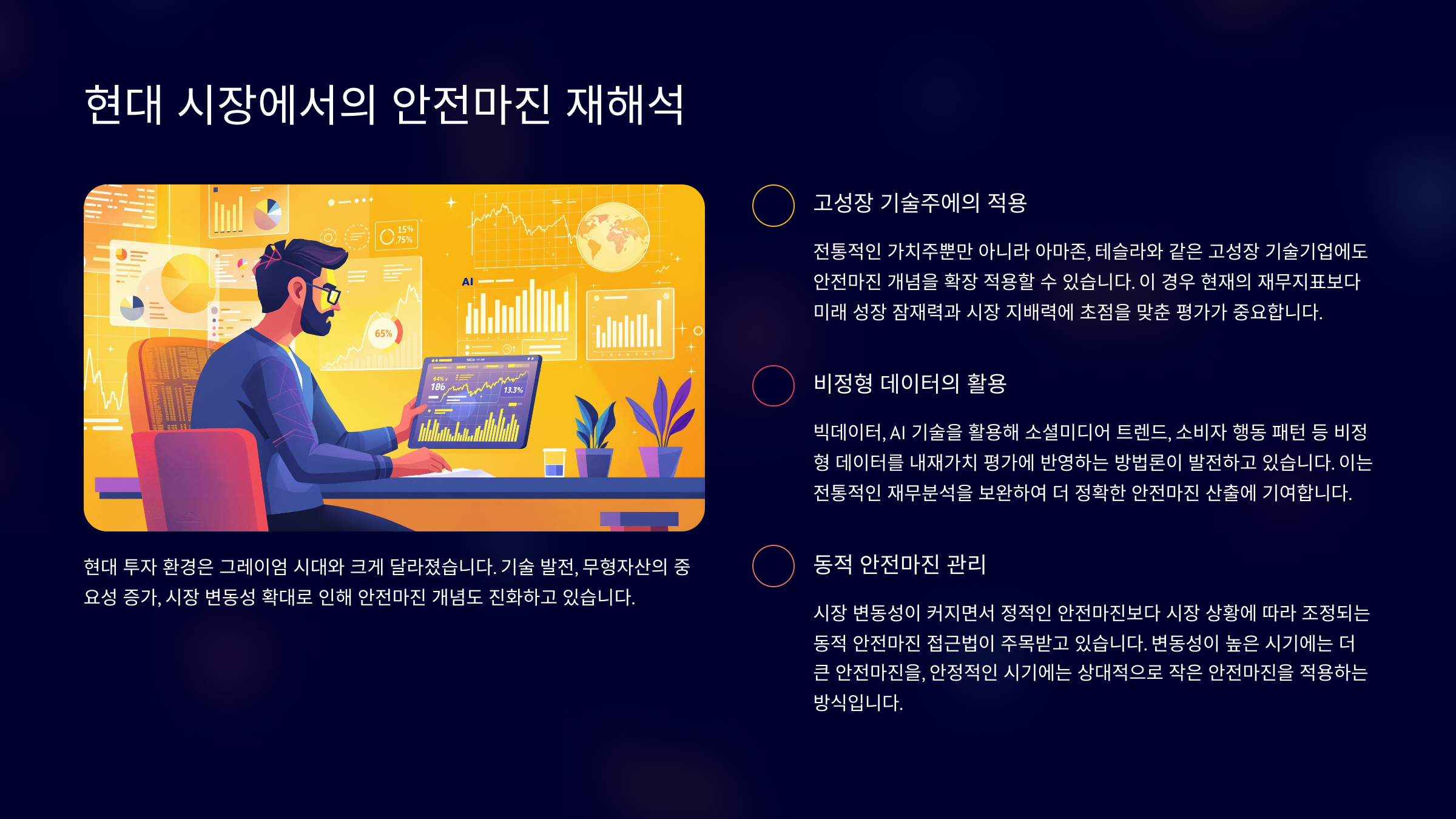 현대 시장에서는 안전마진의 개념이 단지 ‘가격 차이’만이 아니라, 포트폴리오 전체의 구조, 산업 내 경쟁력, 비즈니스 모델의 지속 가능성까지 포함하는 방향으로 확장되고 있어요.