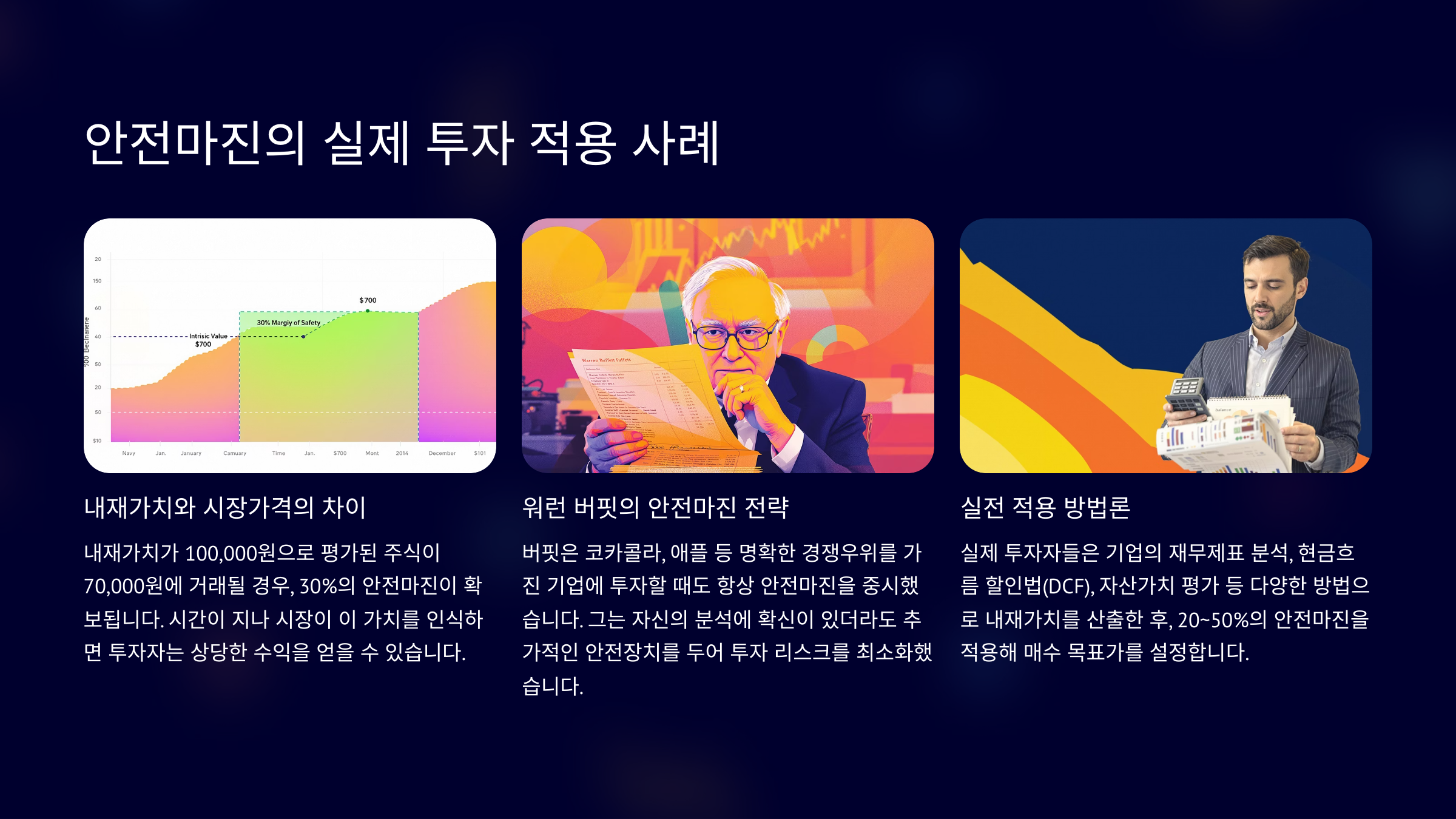 안전마진은 개념적으로 이해하는 것도 중요하지만, 실제 투자에 어떻게 적용되느냐가 훨씬 중요해요. 이 개념은 주식, 채권, 부동산 등 거의 모든 투자 자산군에 활용 가능하답니다.