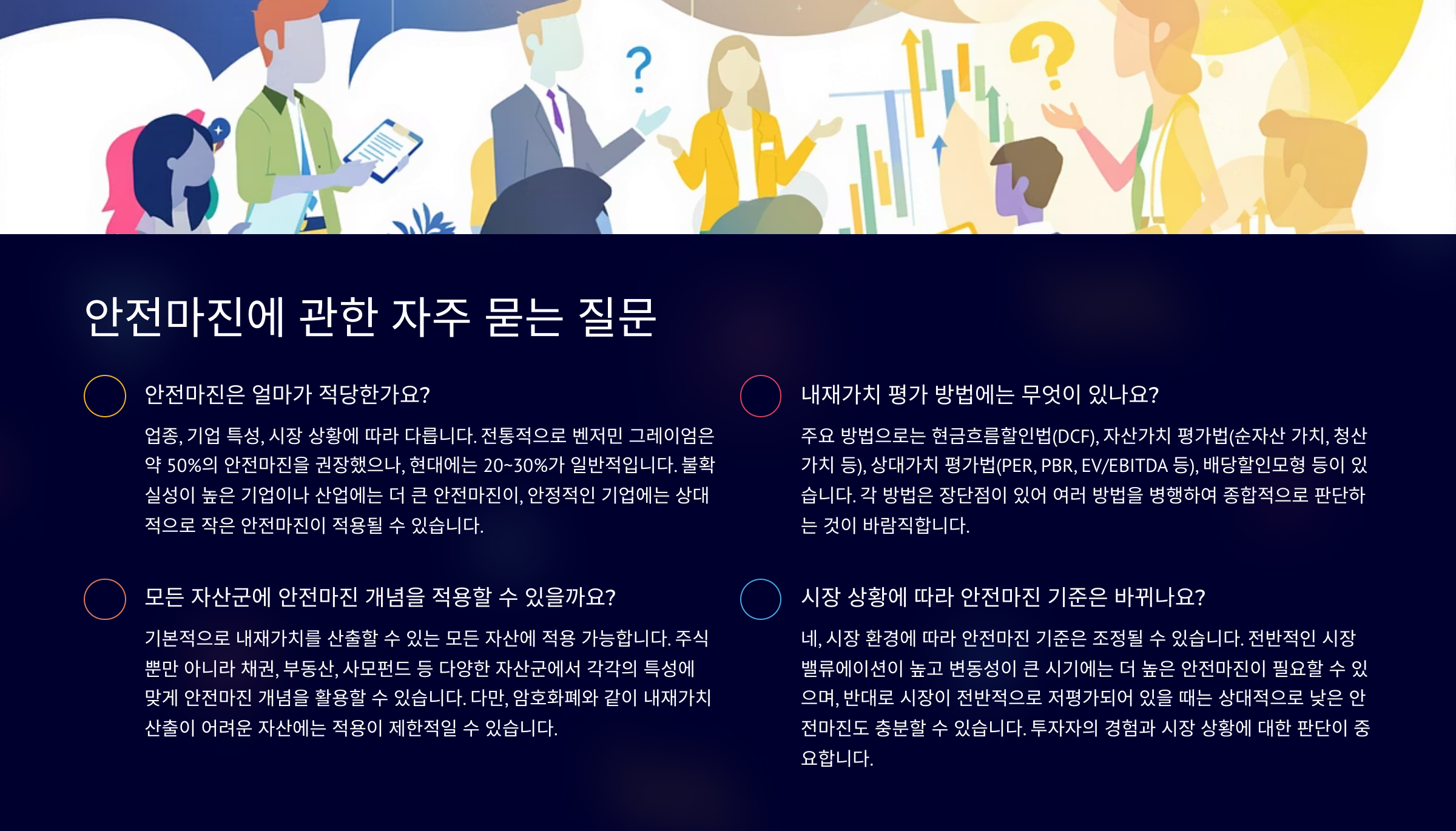 이런 환경에서도 안전마진 개념은 여전히 유효해요. 오히려 더 복잡하고 불확실한 요인이 늘어난 지금, ‘틀려도 괜찮은 투자’를 위한 장치는 더 중요해졌다고 볼 수 있어요.