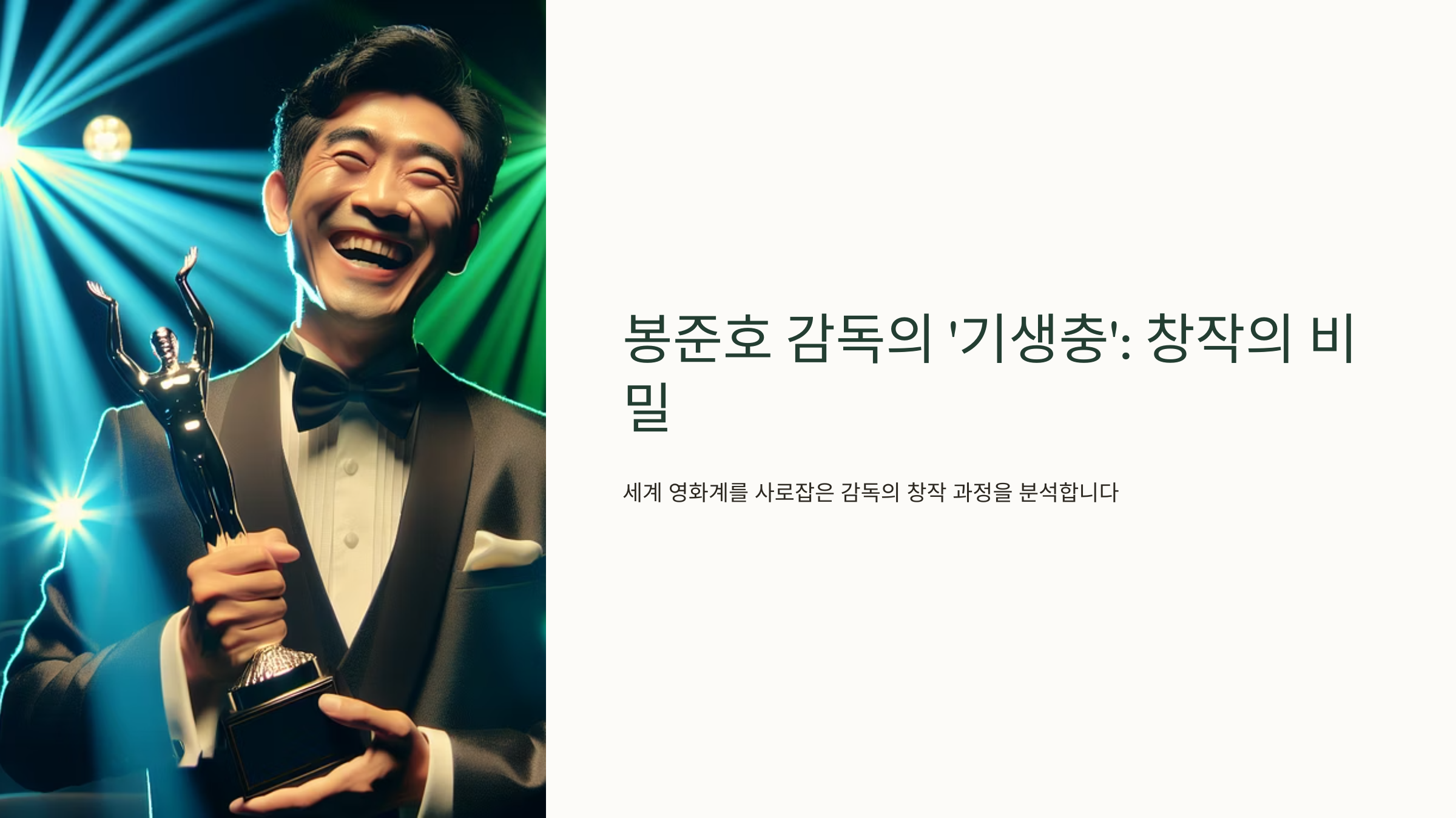 그는 한 인터뷰에서 “우연히 오랜 지인의 집에 갔다가 고급 주택과 반지하의 차이를 물리적으로 체감하게 되었고, 그 순간 이야기가 머릿속에 확 들어왔다”고 밝혔어요. 그 공간 구조에서 스토리가 시작된 셈이죠.
