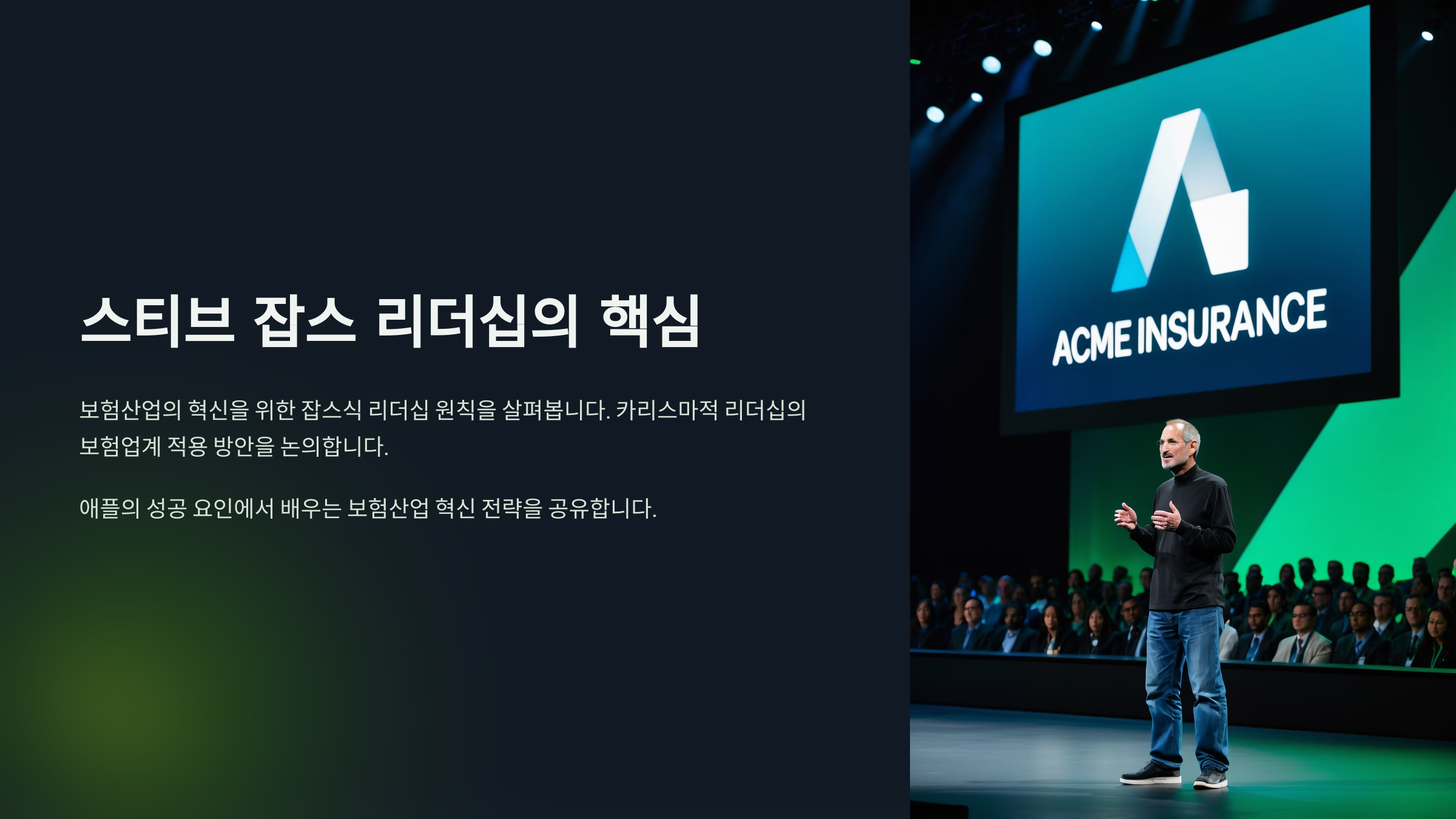 이 글에서는 스티브 잡스의 리더십이 보험업계에서 어떻게 실현되고 있는지 실제 사례를 중심으로 살펴볼 거예요. "내가 생각했을 때" 이 리더십은 IT 못지않게 보험업계에도 놀라운 변화를 줄 수 있다고 봐요!