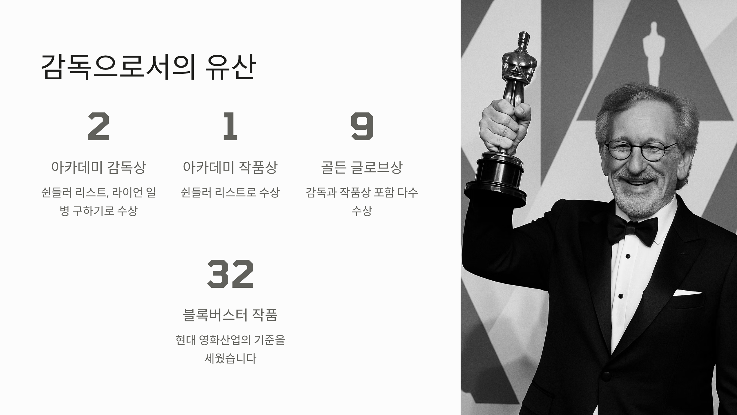 그렇기 때문에 그가 말하는 '성공한 감독'이란, 단순히 시상식 트로피를 많이 받은 사람이 아니라 사람들의 기억 속에 오랫동안 남는 작품을 만든 사람이라고 해요.