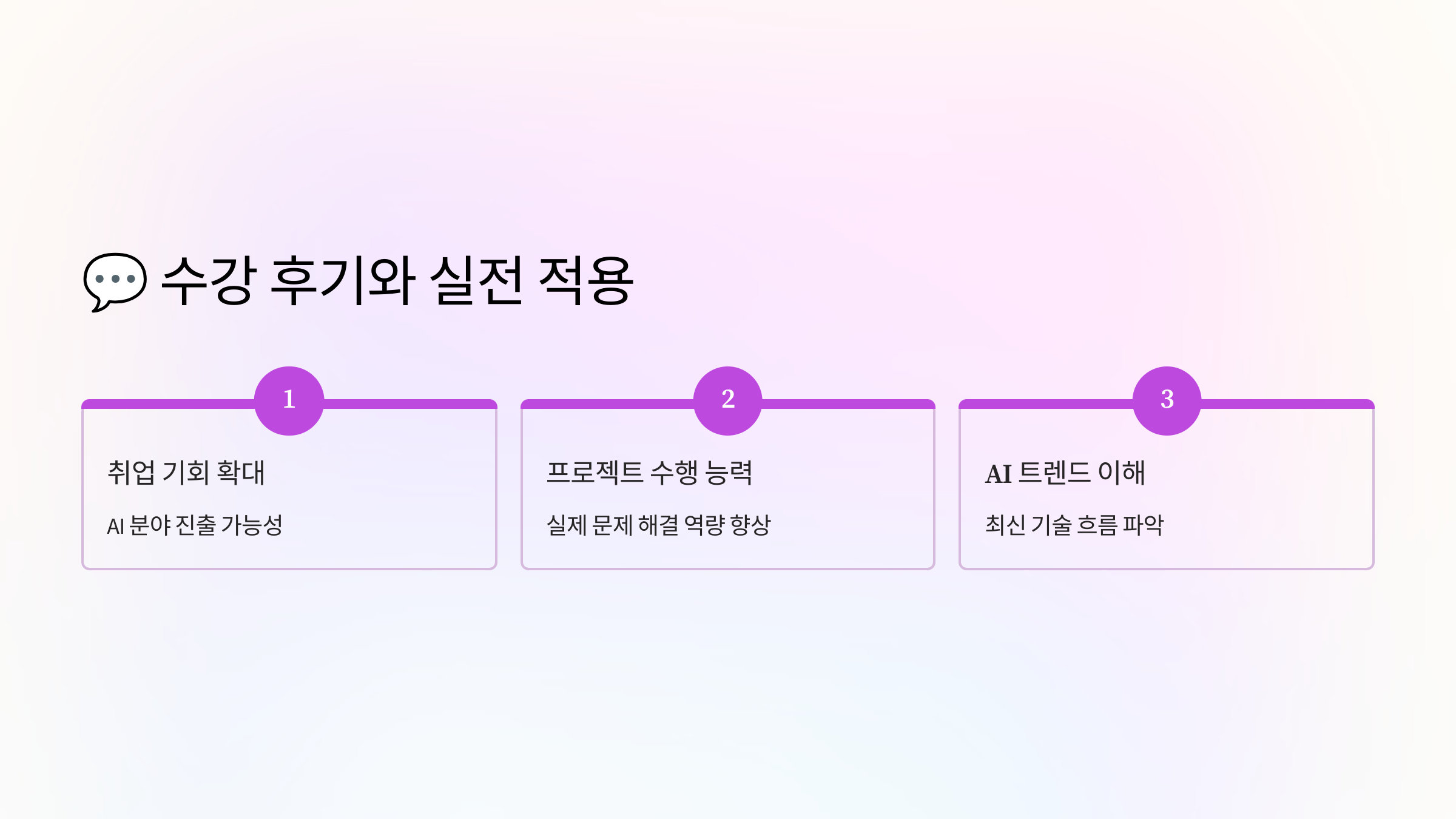 실제 수강 후기에서도 가장 많이 언급되는 말은 “AI가 멀게 느껴지지 않았다”예요. AI를 단순한 기술로 이해하는 게 아니라, 일상 문제를 해결하는 도구로 인식하게 된 거죠. 이건 단순한 강의 이상의 변화라고 할 수 있어요. 🌍