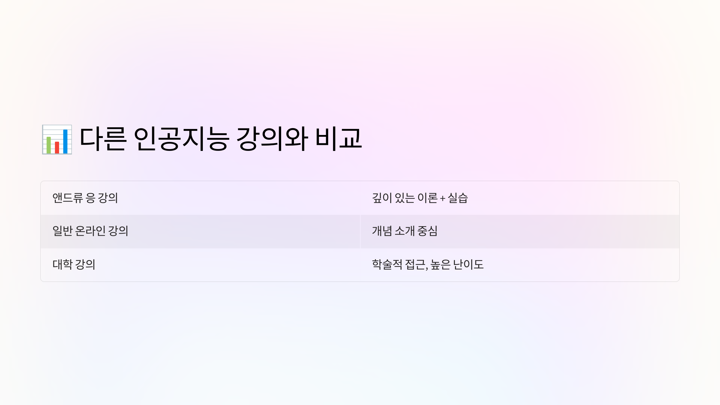 ⚖️ 주요 인공지능 강의 비교표