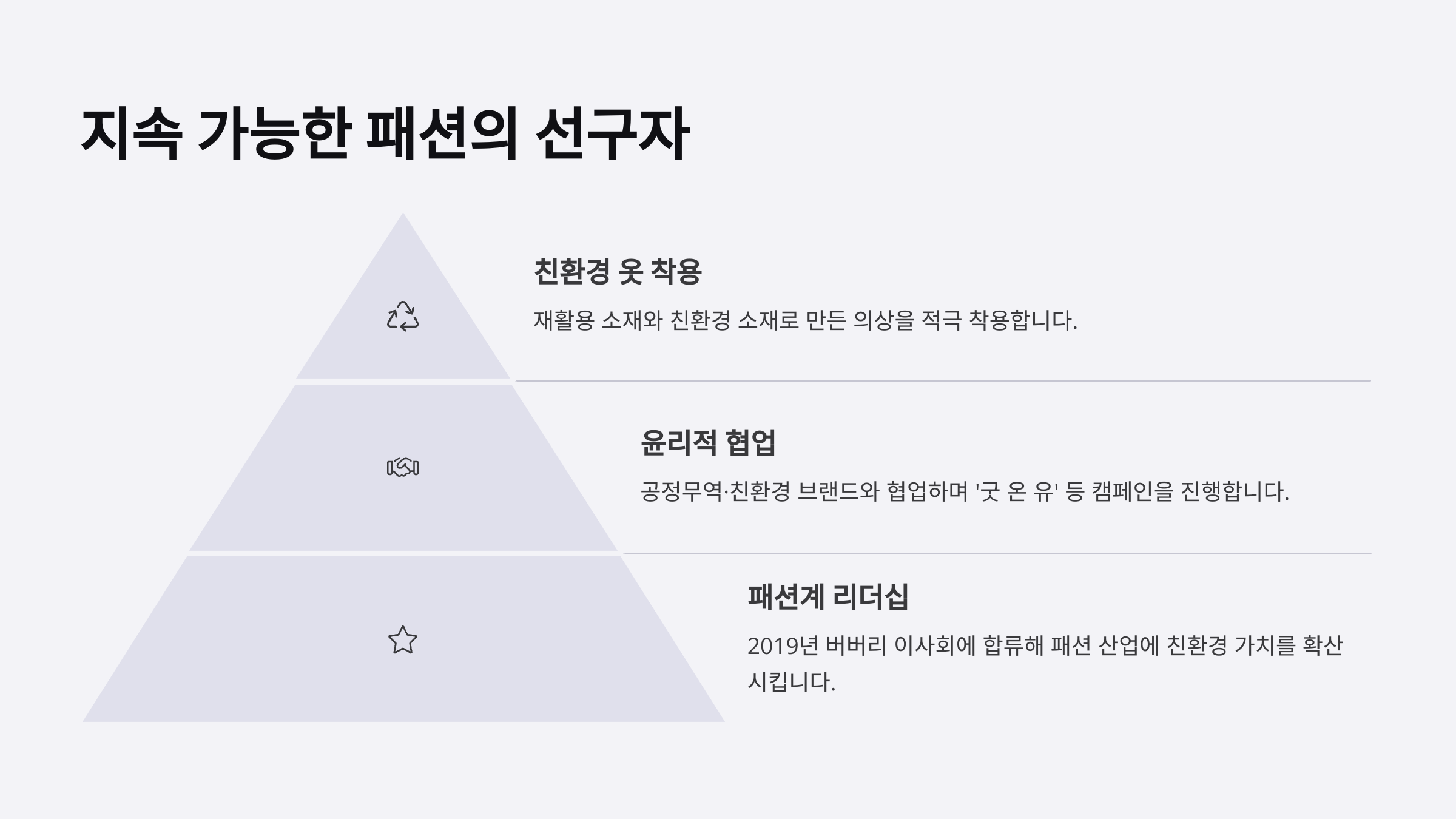 그녀는 2011년부터 윤리적 패션 브랜드와 협업하거나, 레드카펫에서도 친환경 소재의 드레스를 입는 등 패션을 통해 메시지를 전하고 있어요. 이는 '스타일과 가치'를 동시에 추구할 수 있다는 걸 보여준 대표적인 사례랍니다.