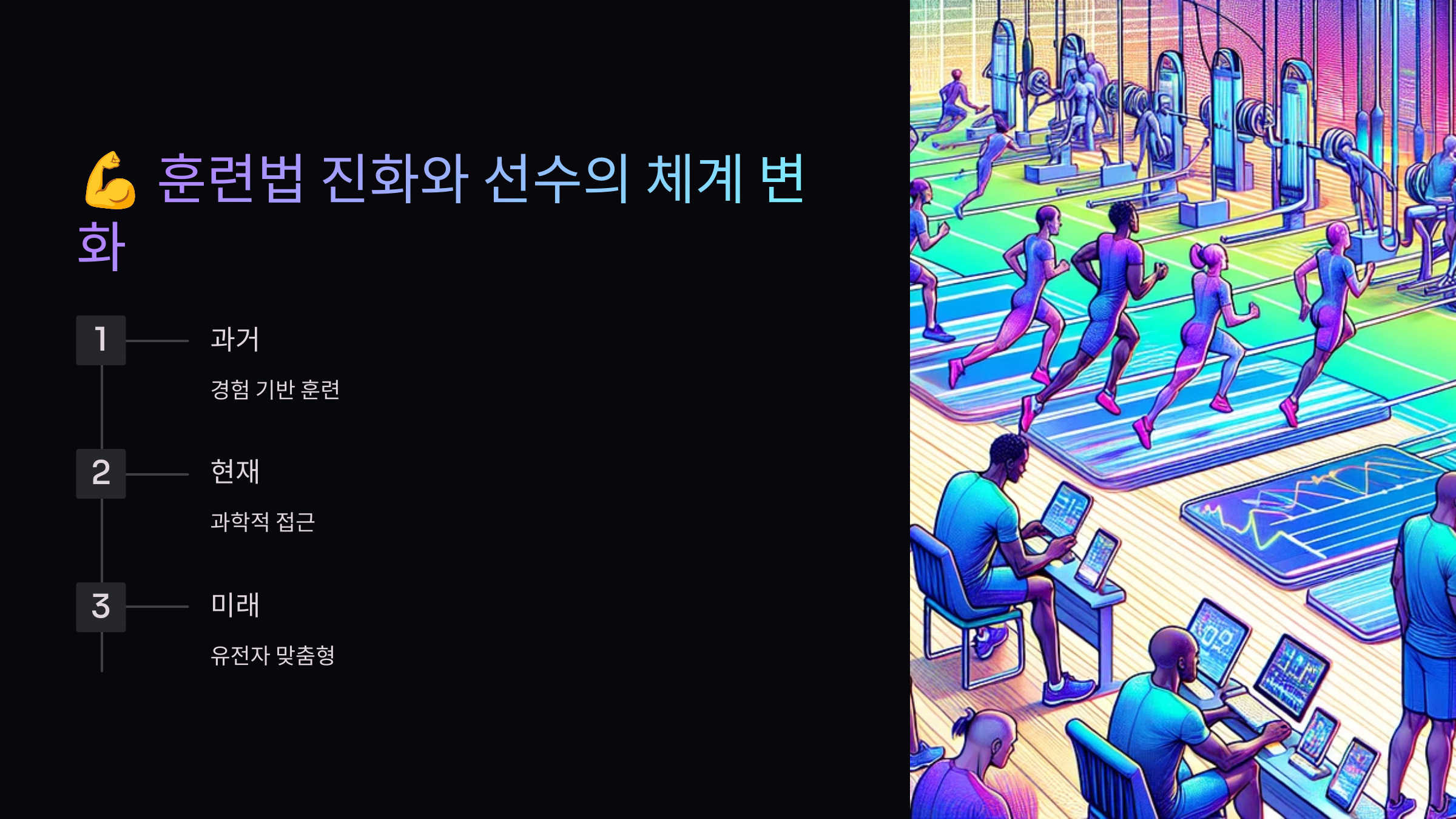 또한 미래에는 기술, 유전자 분석, 맞춤형 훈련, 심리코칭이 결합된 완전한 퍼포먼스 관리 시스템이 등장할 수 있어요. 마치 포뮬러1 팀처럼, 한 명의 선수를 위해 수십 명이 움직이는 구조가 될 수도 있죠. 🧬