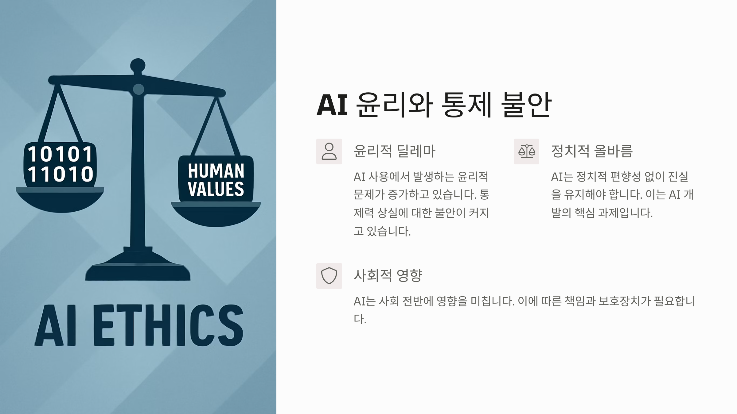 AI가 점점 더 고도화되면서 ‘윤리’라는 단어가 자주 언급되고 있어요. 일론 머스크는 바로 이 AI 윤리 문제에 깊은 고민을 안고 있었죠. 그가 걱정하는 건 AI가 착하고 선한 선택을 하느냐가 아니에요. AI가 인간이 만든 도덕이나 법을 무시할 가능성이 더 무섭다는 거예요.