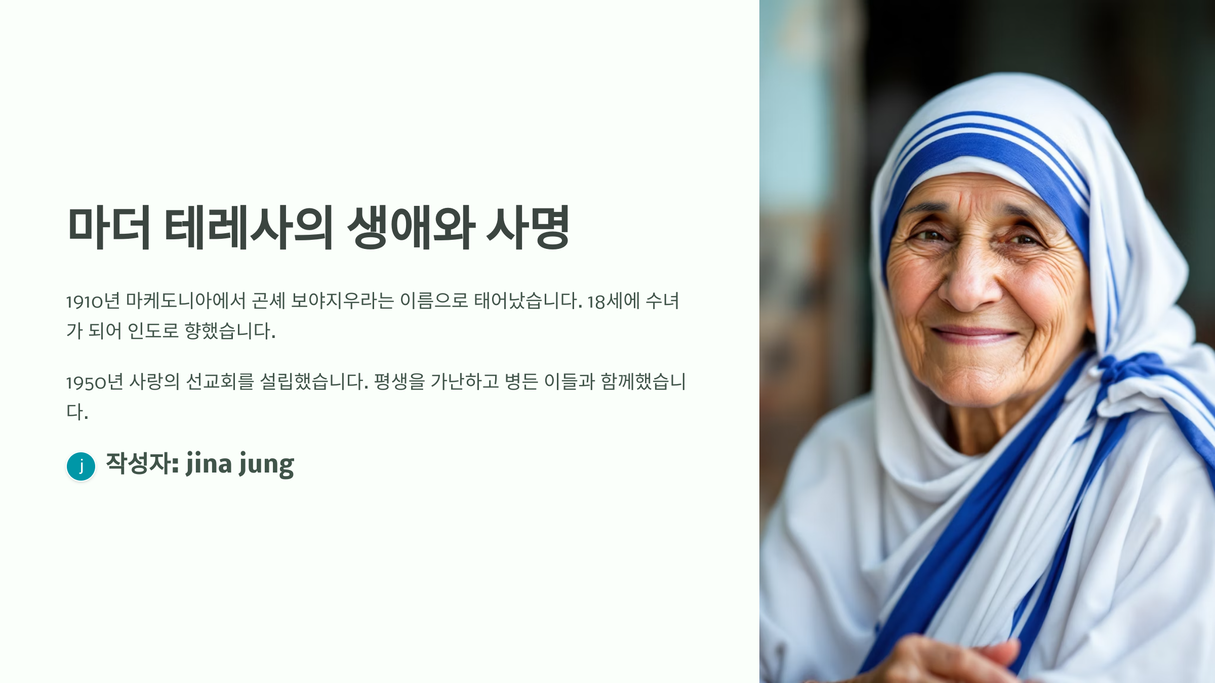 🙏 마더 테레사의 생애와 사명