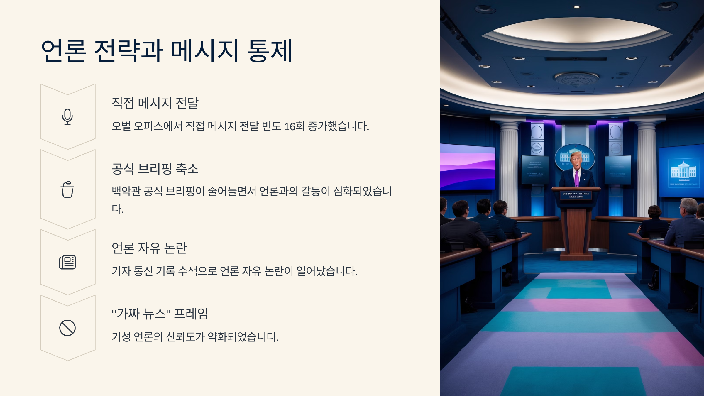 이처럼 트럼프는 전통 언론을 활용하지 않고도 정보 확산에 성공한 몇 안 되는 정치인이에요. 그는 언론과의 전면전을 통해 오히려 더 많은 주목을 받으며 역설적 효과를 끌어낸 셈이죠.