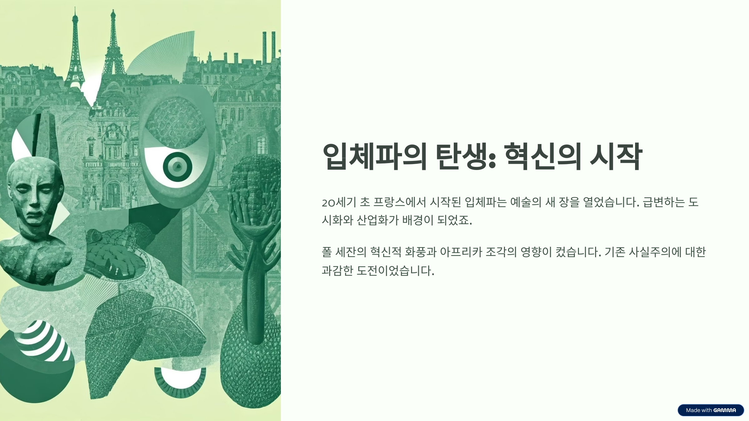 그래서 입체파는 시간이 지나도 여전히 흥미로운 그림이에요. 한 번 보고 마는 그림이 아니라, 계속 생각하게 만드는 힘이 있답니다. 🧠