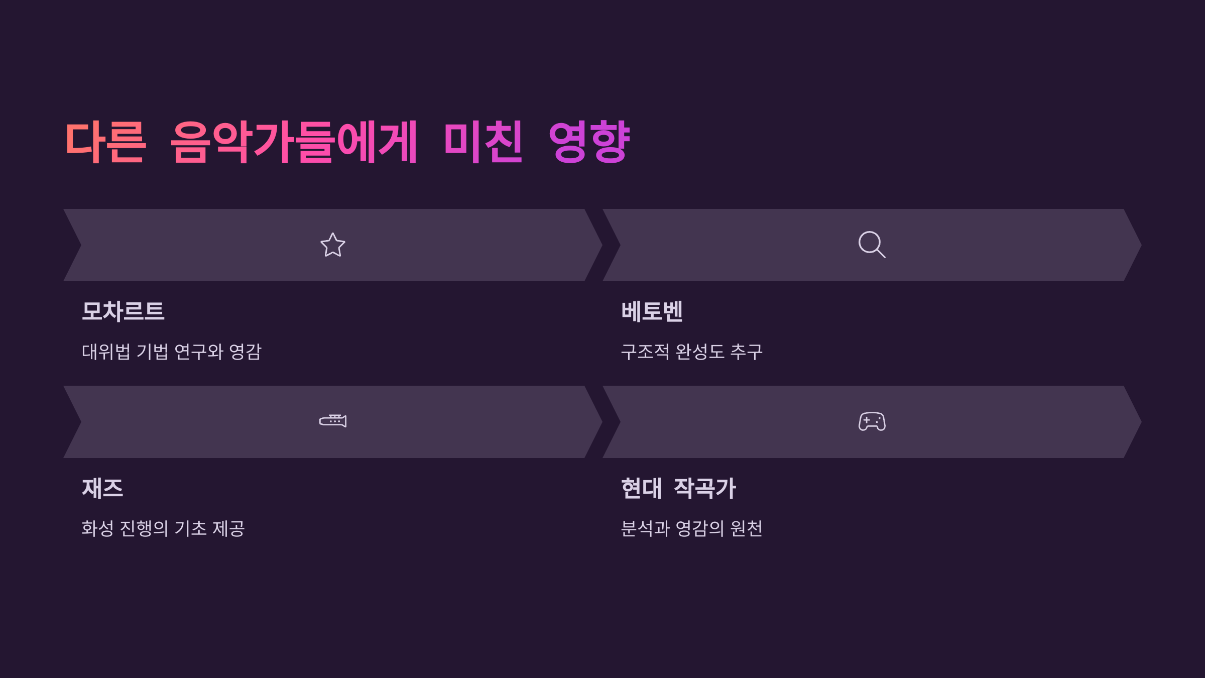 👀 아래 표에서 바흐가 어떤 작곡가에게 어떤 방식으로 영향을 주었는지 정리했어요. 스크롤해서 확인해보세요!