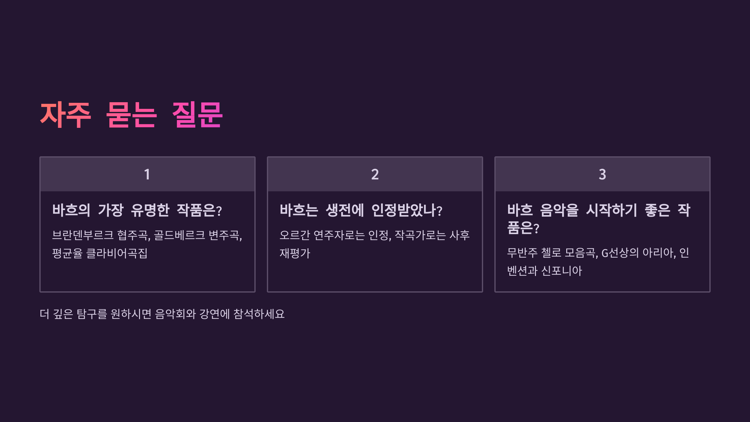 Q5. 바흐의 음악을 공부하려면 어디서 시작하면 좋을까요?
